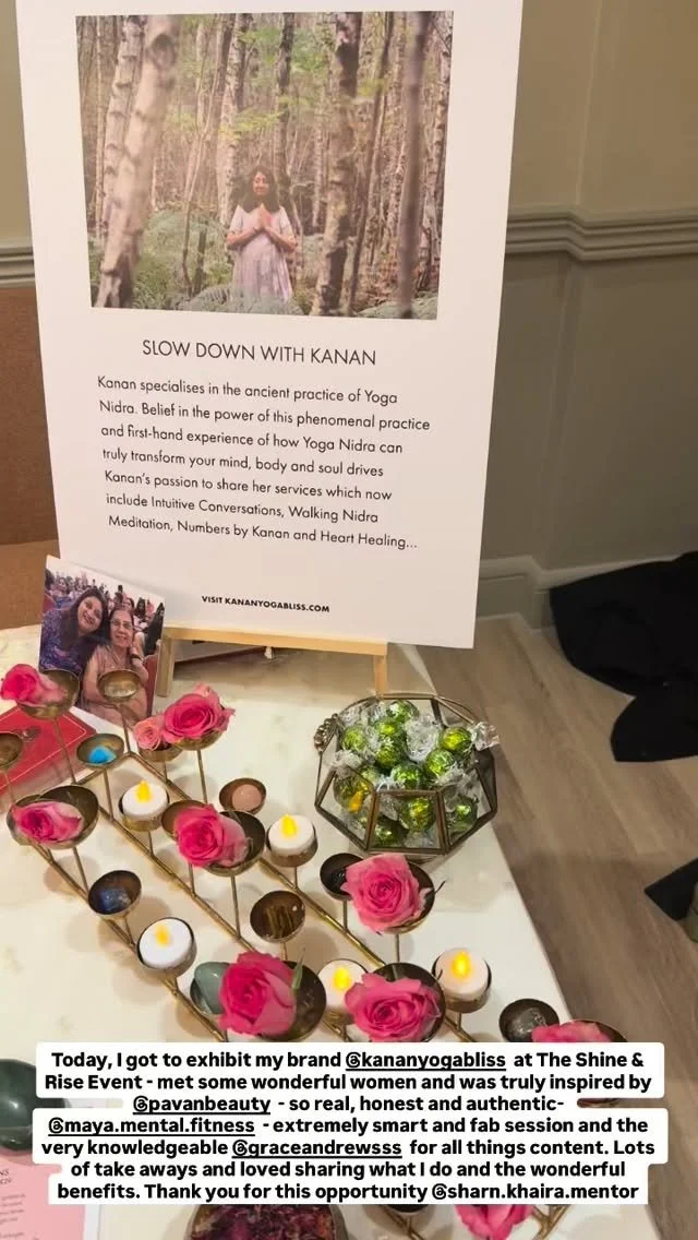 Belief in the power of this phenomenal practice and first-hand experience of how Yoga Nidra can truly transform your mind, body and soul drives Kanan’s passion to share her services which now include Intuitive Conversations, Walking Nidra Meditation, Numbers by Kanan and Heart Healing…
